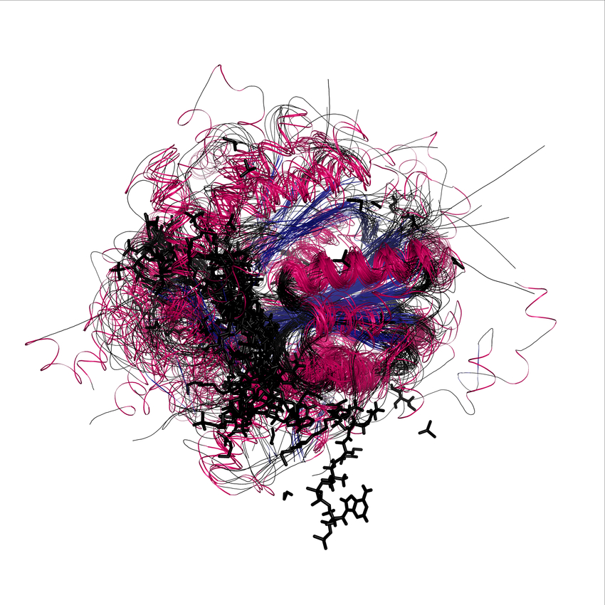 These superposition figures provide an indication of the relative distance and position of secondary structure elements
