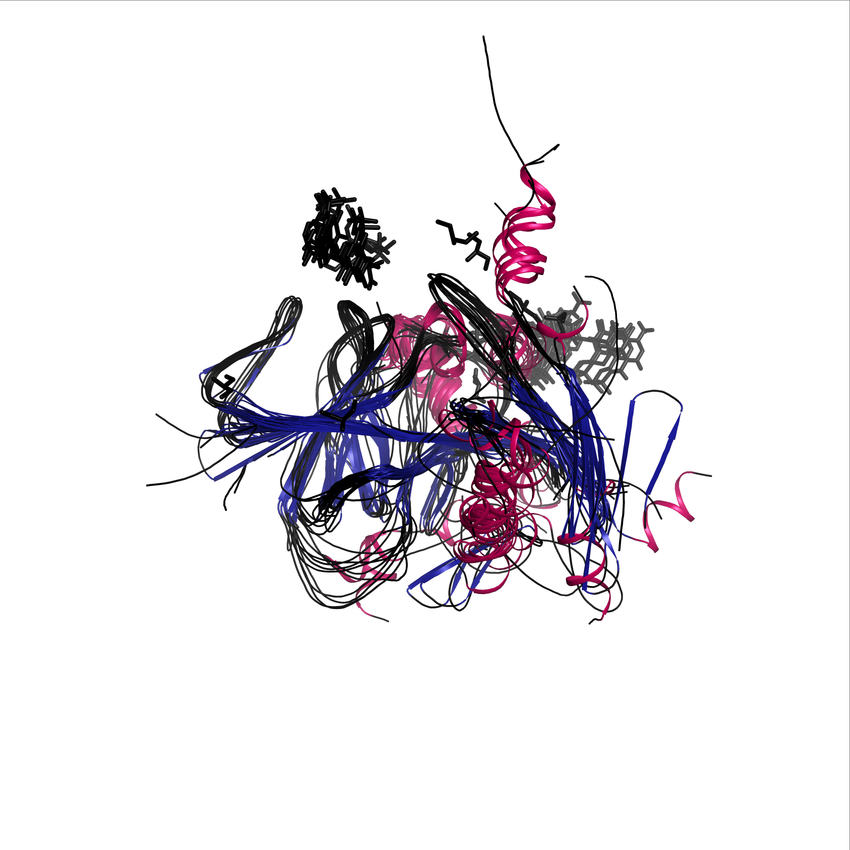 These superposition figures provide an indication of the relative distance and position of secondary structure elements