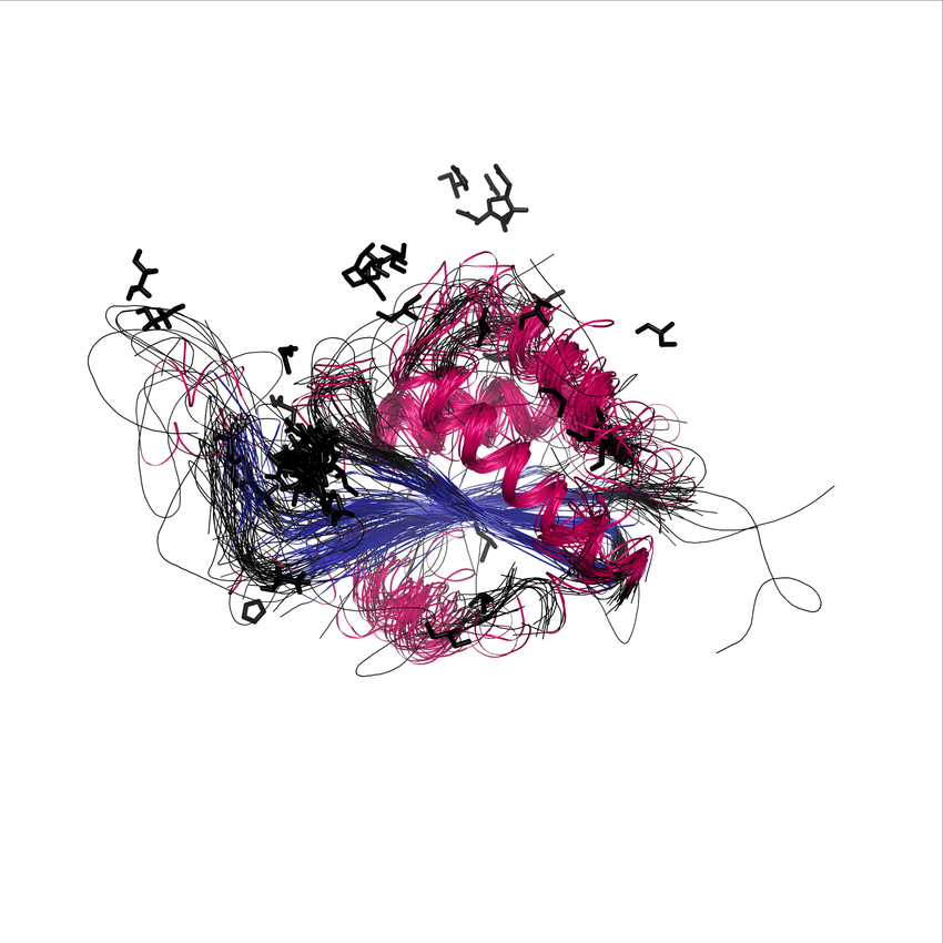 These superposition figures provide an indication of the relative distance and position of secondary structure elements