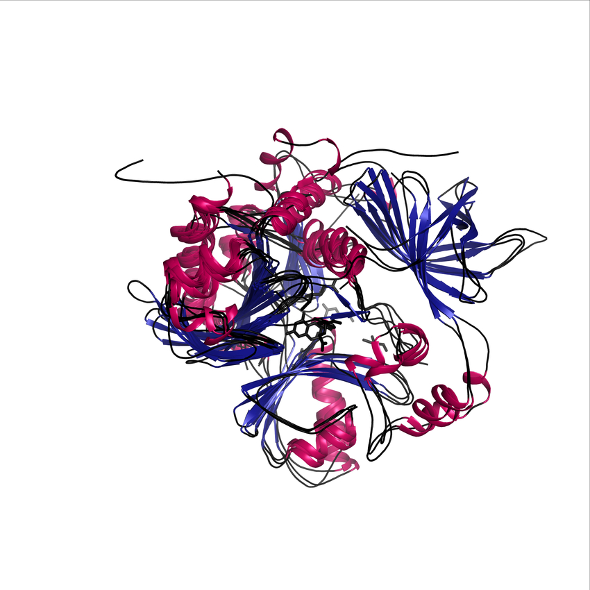 These superposition figures provide an indication of the relative distance and position of secondary structure elements