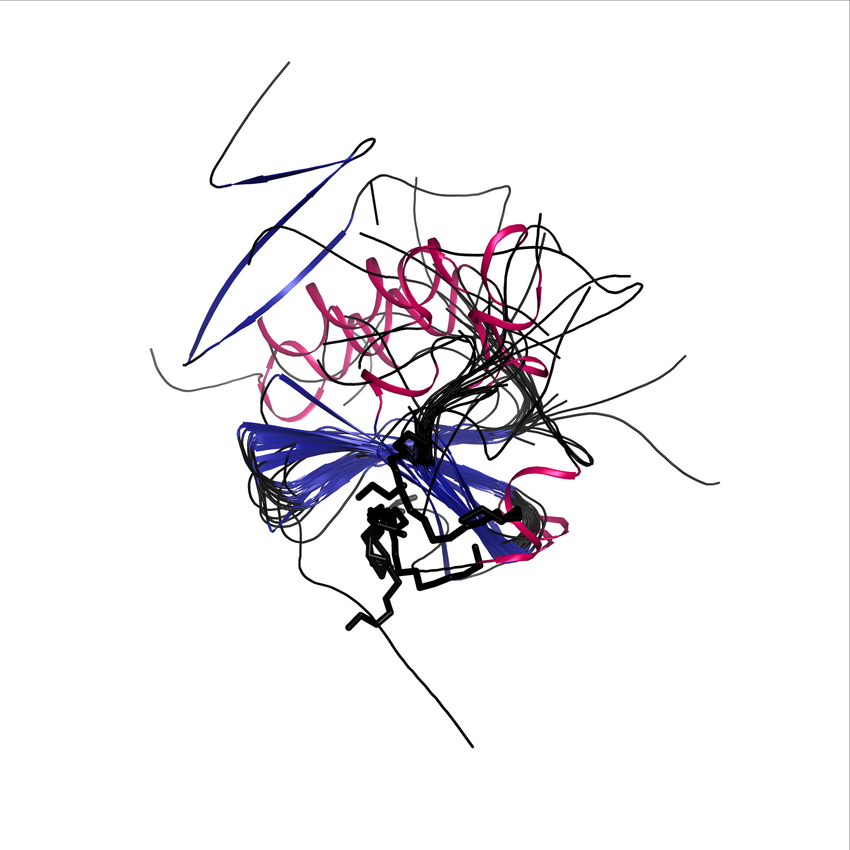 These superposition figures provide an indication of the relative distance and position of secondary structure elements