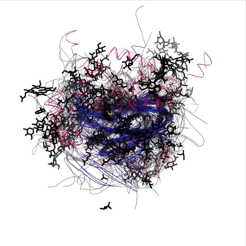 These superposition figures provide an indication of the relative distance and position of secondary structure elements